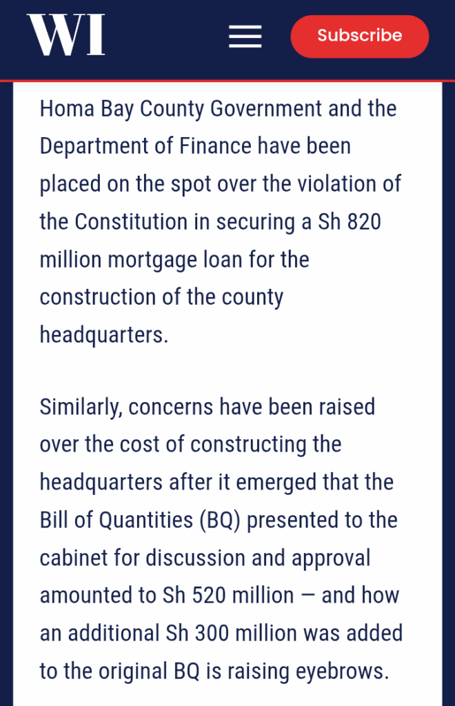 Homa Bay County, led by Governor Gladys Wanga, is facing serious questions over how it secured a Sh 820 million mortgage loan for building the county headquarters.