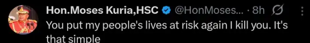 Senior government advisor Moses Kuria has shocked many people online after he posted a harsh and unclear warning about future demonstrations in the Mt Kenya region.