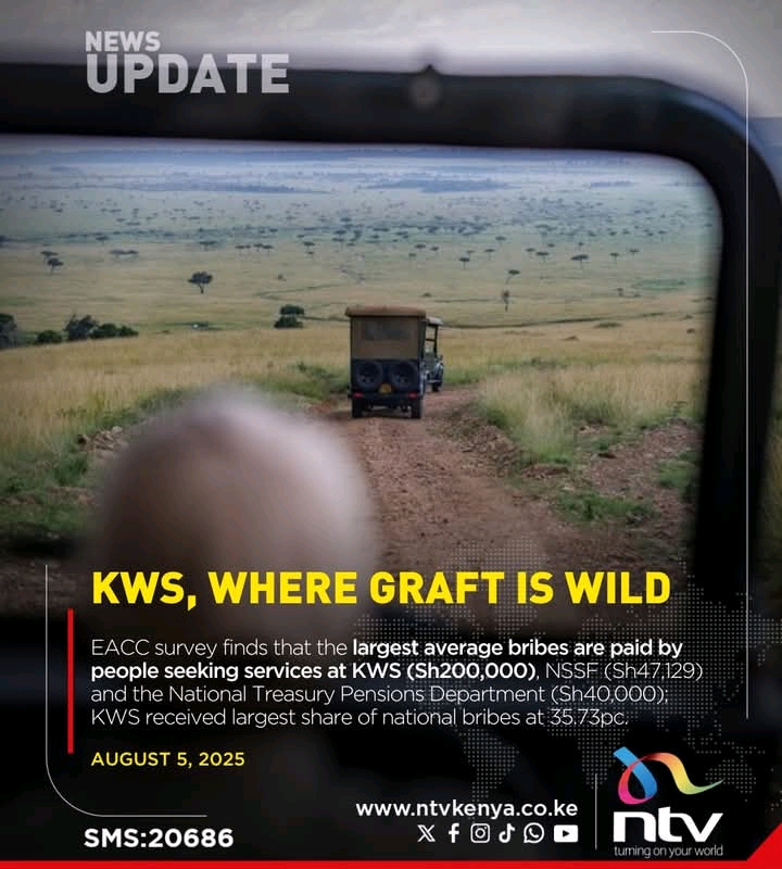 Released on August 5, 2025, the National Ethics and Corruption Survey 2024 placed KWS at the center of attention, after it was revealed that it demanded the highest average bribe of Sh200,000 and accounted for 35.73% of all bribes reported nationally.