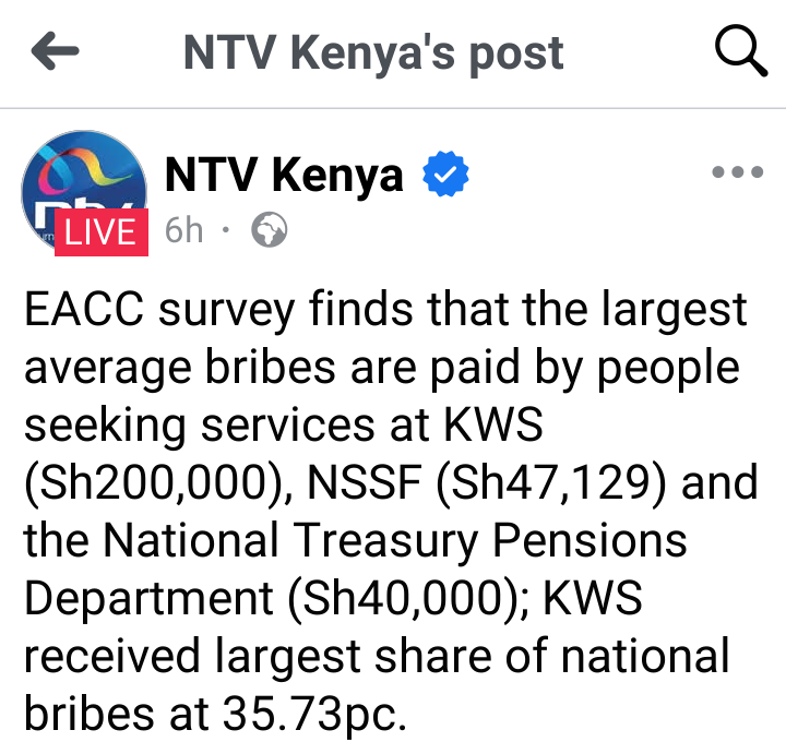 The high amount of bribes being demanded implies the institution is no longer focused on service delivery but on extracting money from citizens and investors by any means possible. Such practices not only tarnish its reputation but also undermine conservation efforts and public trust.