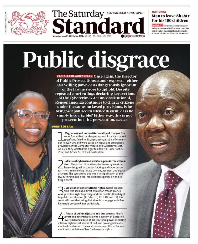 But not for Renson Ingonga. He continues to approve charges using those very same sections, as if court rulings mean nothing. That is a serious breach of the Constitution and a threat to every Kenyan’s right to due process.