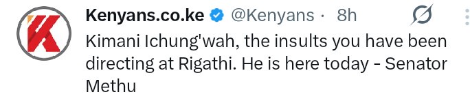 Methu challenged Ichung’wah and questioned his recent public statements, daring him to repeat some of the remarks he has allegedly made about former Deputy President Rigathi Gachagua.